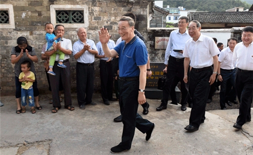 9月24日至26日,中共中央政治局常委、中央纪委书记王岐山在福建调研。这是9月24日,王岐山在连城县红四军革命旧址参观时,向附近的村民挥手致意。(新华社记者 张铎 摄)
