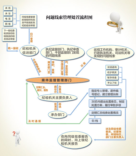 问题线索——即反映关于党员、干部违规违纪问题的线索,过去通常叫案件线索。正如法院宣判前只能称某某“涉嫌犯罪”,纪检机关立案前的线索也不是案件线索,只能叫反映领导干部问题线索。这一称谓的改变,体现了纪检机关职能的转变,是对党章规定的回归。