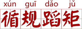 循、蹈:遵循,依照。规、矩是定方圆的标准工具,借指行为的准则。原指遵守规矩,不敢违反。现也指拘守旧准则,不敢稍做变动。今多含贬义。